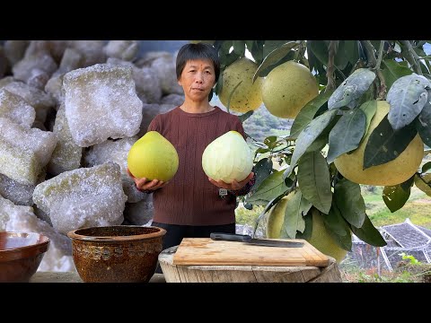 ส้มโอห้อยตามกิ่งก้าน คุณยายหยิบมาทำขนมส้มโอ 2 ชนิด [คุณยายฝูเจี้ยนคุณยาย]