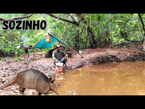 🏕️ ACAMPAMENTO selvagem, em um local Bastante isolado tatú e vários pe...#HTML